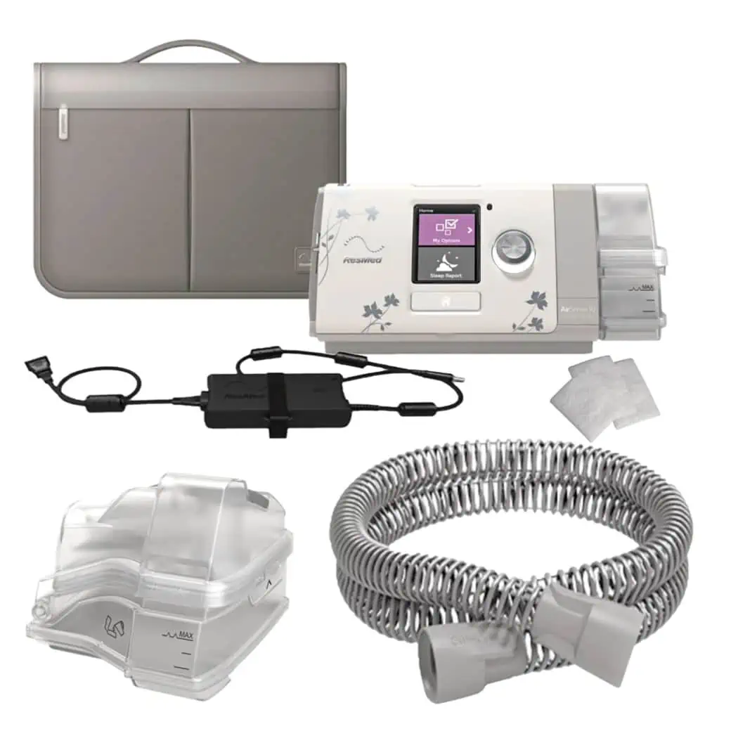Aparat AirSense™ 10 AutoSet for Her można zabrać ze sobą̨ wszędzie. Należy się̨ jedynie upewnić, że posiadany zasilacz jest odpowiedni dla regionu, do którego się udajemy. Niektóre linie lotnicze nie wliczają urządzeń medycznych do limitu bagażu podręcznego. Należy sprawdzić przepisy danej linii lotniczej dotyczące przewozu aparatury medycznej. Z aparatu AirSense™ AutoSet for Her można korzystać w samolocie, ponieważ spełnia wymagania Federalnej Administracji Lotnictwa USA (Federal Aviation Administration, FAA). Dokumenty poświadczające zgodność z przepisami lotniczymi można pobrać i wydrukować. Dodatkowo można zakupić łącznik z wejściem na koncentrator tlenu lub butlę tlenową.