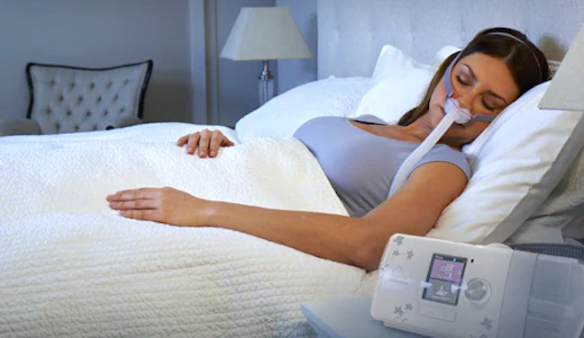 • Funkcje komfortu: cicha turbina EasyBreathe™ zapewnia naturalne i komfortowe oddychanie, a opływowy przewód SlimLine został zaprojektowany tak, aby sen był bardziej komfortowy.