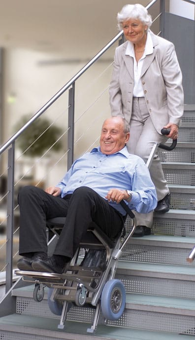 Schodołaz ma ergonomiczny uchwyt, który można dostosować do wzrostu osoby go prowadzącej. Jego raczki pokryte są materiałem antypoślizgowym, zapewniając bezpieczeństwo osoby transportowanej. W tym samym celu wprowadzono nowy system hamulcowy, który działa po pokonaniu długości każdego stopnia — jest to zapewnienie, że schodołaz nie ruszy sam do przodu. Schodołaz po schodach porusza się za pomocą wyciąganych wypustek, które przypominają stawianie kroków. Transport na nim odbywa się w lekko pochylonej do tyłu pozycji. Jest łatwy w obsłudze, niezawodny w użytkowaniu i bezpieczny dla użytkownika.