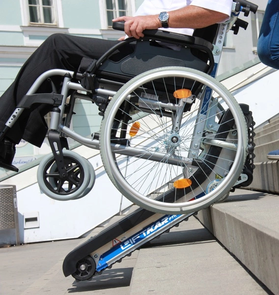 Liftkar PTR to elektryczny schodołaz gąsienicowy, który umożliwia bezpieczne i wygodne pokonywanie schodów osobom starszym i niepełnosprawnym. Dzięki stabilnym gąsienicom, intuicyjnej obsłudze i systemowi hamulcowemu zapewnia pełne bezpieczeństwo i komfort użytkowania. Lekka, składana konstrukcja ułatwia transport, a mocny silnik gwarantuje płynne poruszanie się po schodach zarówno wewnątrz budynków, jak i na zewnątrz.