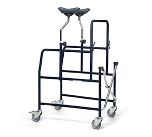 Podpórka na czterech kółkach z podparciami pod pachy. Konstrukcja składana. Dwa kółka wyposażone w hamulce. W standardzie bez siedziska – siedzisko (opcja).