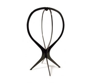 Składany stojak do peruki wykonany z tworzywa sztucznego.