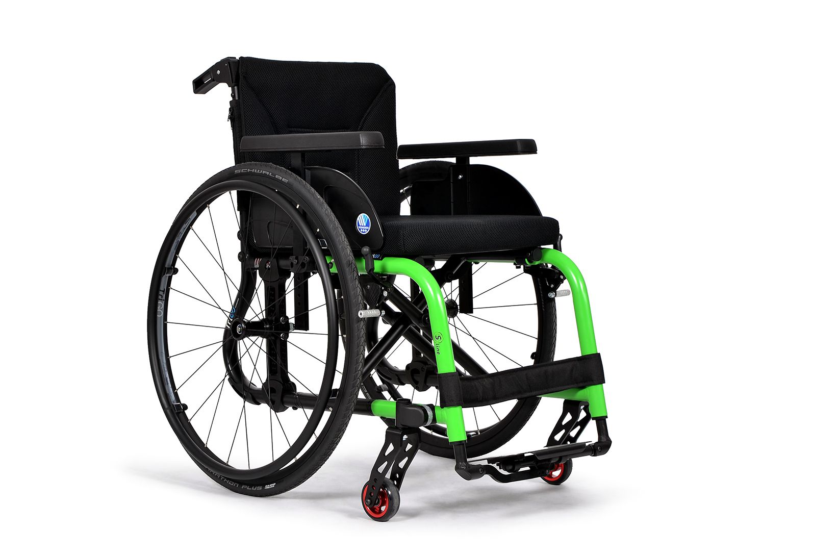 *Wersja „S” to bardziej sportowy charakter. Podnóżki są zintegrowane z ramą , a wybór ramy z 80° kątem zgięcia kolan jeszcze bardziej stwarza uczucie , że jedzie się na wózku ze sportowym zacięciem. Rama na krzyżaku.